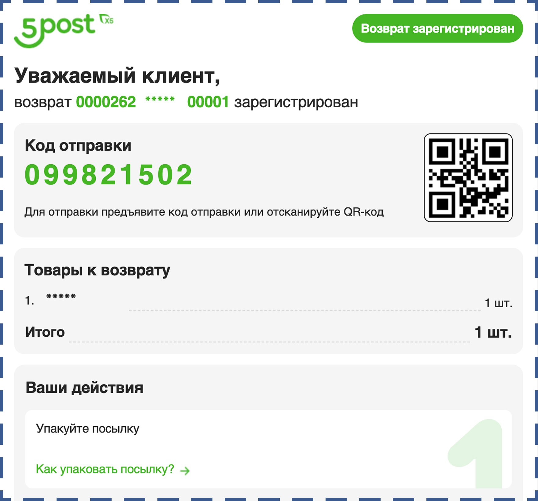 - Продиктуйте код отправления и передайте упакованную посылку сотруднику магазина (кассиру);